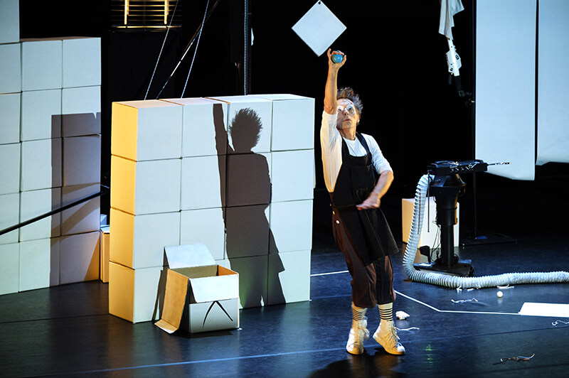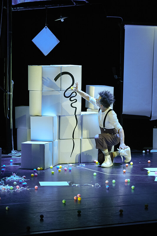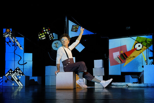 Le langage du spectacle allie mime, musique et projections vidéo et propose un accès original à l’œuvre de Vassily Kandinsky. Entre théâtre et arts visuels, il confronte le monde décalé et burlesque de Monsieur Maurice et l’univers graphique du Maître des formes et des couleurs. Une invitation à contempler et ressentir.