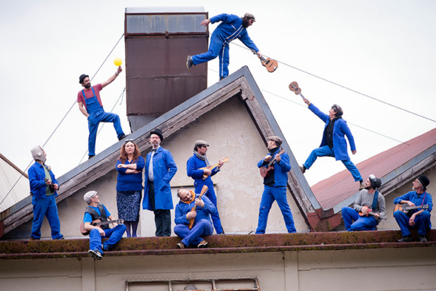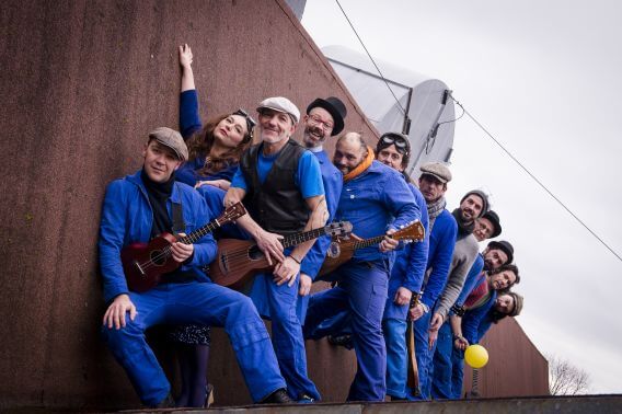 l y a plus de 10 ans, dans les bas-fonds industriels du bassin grenoblois, naissaient les ateliers du groupe The Big Ukulélé Syndicate, chaine de fabrication de musique déjantée autour de ce petit instrument loufoque et ludique. Il réunit 12 musiciens en mode « big band », qui chantent en anglais et distille une musique ultra festive !