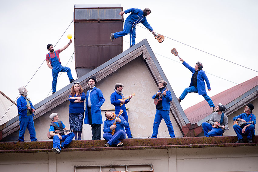 modernes et bouleversent l’image du ukulélé : avec des orchestrations joyeusement décalées et une mise en scène fantaisiste qui s’inspire des relations patrons/ouvriers d’antan.