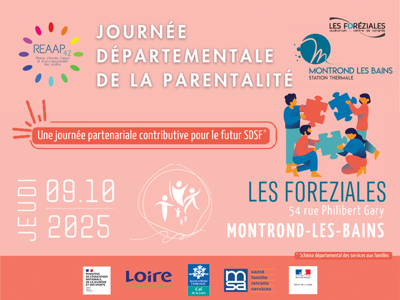 Cette édition 2025 à l’initiative du Réseau REAAP, avec le Ministère de l’Éducation Nationale, de la Jeunesse et des Sports, la CAF de la Loire, la MSA et la Préfecture de la Loire, vise à réunir l’ensemble des acteurs de la parentalité du département – élus, professionnels